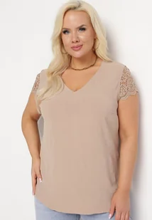 Beżowa Bluzka z Krótkimi Rękawami z Delikatnej Koronki Verlina