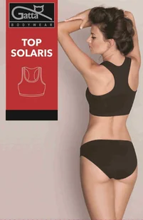 Kobiecy, miękki, sportowy top typu bokserka, w czarnym kolorze. Brak fiszbinów i dodatkowych usztywnień sprawia wrażenie braku jakiejkolwiek odzieży na ciele...