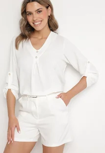 Biała Bluzka o Trapezowym Kroju z Dekoltem w Serek i Podpinanymi Rękawami Aslimi