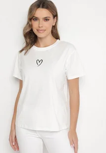 Biała Bluzka z Bawełny Ozdobiona Sercem Lenala