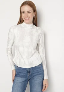 Biała Bluzka z Długim Rękawem i Stójką Marszczona w Talii Ralendia