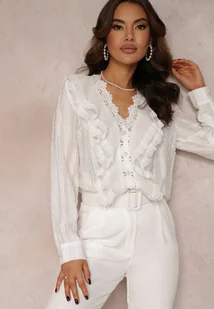 Biała Koszula z Falbankami i Ażurową Koronką Fairwillow