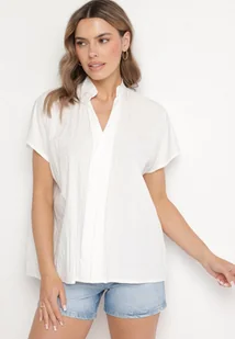 Biała Nietoperzowa Bluzka Oversize z Wiskozą z Dekoltem w Serek Davilisa