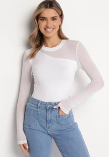 Biała Wiskozowa Bluzka z Asymetrycznym Dekoltem i Siateczką Layera