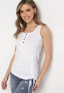 Biały Asymetryczny Top z Bawełny na Ramiączkach Zapinany na Guziki i Wykończony Troczkiem Ulilama