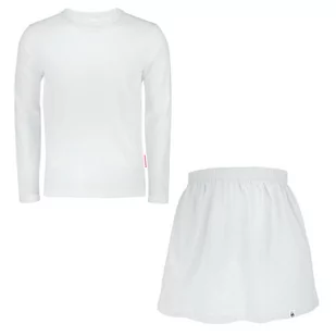 100% bawełna Kolor: Biały Rozmiar bluzki: 104 cm Rozmiar spódniczki: 104/110 cm Certyfikat: Bezpieczny dla dziecka Producent: