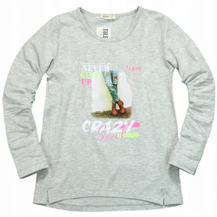 Bluzka z nadrukiem CRAZY w odcieniu szary melanż z przodu duży nadruk długie rękawy tył delikatnie dłuższy po bokach, na dole rozcięcia miła w dotyku bawełna...
