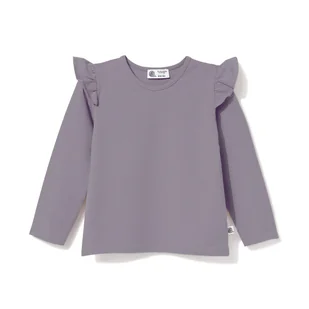 Bluzka bawełniana z falbanką, liliowo-szara 128/134