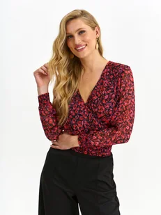 Bluzka damska Top Secret z kopertowym wykończeniem przodu. Krótka bluzka damska z długim rękawem zakończonym mankietem z zapięciem na guzik. Posiada ona okazały dekolt w kształcie litery V oraz kopertowe wykończenie przodu, a uroku dodaje jej bardzo szeroka gumka u jej dołu. Została ona wykonana z przyjemnej w dotyku oraz delikatnej tkaniny wiskozowej, będąc wzbogaconą na całości o ciekawy nadruk z motywem kwiatowym. Pięknie prezentuje się ona zarówno w połączeniu z eleganckimi długimi spodniami, jak i również ciekawą spódnicą.