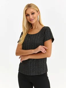 Bluzka damska Top Secret z efektowną metalizowaną nitką. Ujmująca komfortem i wygodą podczas użytkowania bluzka damska o luźnym kroju z krótkimi rękawami w formie kimono zakończonymi delikatnym przeszyciem. Posiada ona okazały okrągły dekolt i wykonana została z przyjemnej w dotyku oraz delikatnej dzianiny z dodatkiem efektownej metalizowanej nitki. Ładnie komponuje się ona zarówno z klasycznymi długimi spodniami lub z ciekawą spódnicą, będąc odpowiednim wyborem tak jako element stroju do pracy, jak i również na co dzień. Bluzka dostępna w kolorze czarnym SBK2919CA.