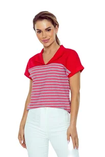 Bluzka damska w paski z kołnierzykiem Tatina czerwona biała L