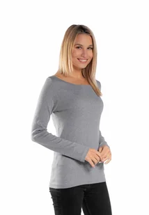 Bluzka damska z klasycznym dekoltem w łódkę: • długi rękaw, • koszulka bez wzoru, • ponadczasowy fason, • dopasowany do sylwetki, • delikatna miła dzianina w...