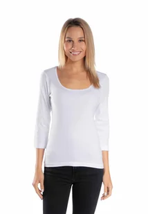 Bluzka damska z klasycznym głębokim dekoltem: rękaw 3/4, koszulka bez wzoru, ponadczasowy fason, dopasowany do sylwetki, przyjemna w dotyku dzianin...