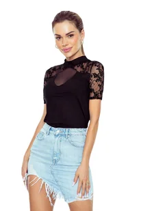 Bluzka damska ze stójką oraz dekoracyjną koronką Rubina czarna S