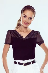 Pakowany w pudełko, Bluzka z krótkim rękawem, Dekolt typu V, Luźny, komfortowy krój, Wysoka jakość, Produkt polski, Koronkowe zdobienia, Elastan - 5%, Poliam...