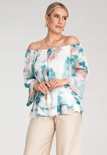 Bluzka hiszpanka | Bluzka w kwiaty | Turkusowa bluzka M1142 r. S/M Numer katalagowy: M1142TKSM Cena produktu: 199.00 Skład materiału: Skład materiału: 100% p...