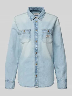 Bluzka jeansowa o kroju regular fit z kieszeniami na piersi i detalem z logo