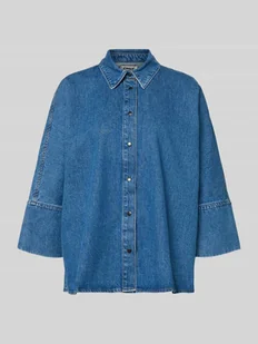 Bluzka jeansowa damska Only;Model ‘Grace’;Efekt: Jeans;Krój: Krój loose fit;Kształt kołnierza: Kołnierzyk koszulowy;Detale: obniżone ramiona;Zapięcie: Listwa z zatrzaskami;Rękaw: Rękawy kimono o dł. 3/4;Materiał: czysta bawełna