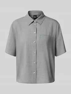 Bluzka koszulowa damska BOSS;Efekt: Melanż;Krój: Krój comfort fit;Kształt kołnierza: Kołnierzyk koszulowy;Aplikacja: Aplikacja z metką;Zapięcie: