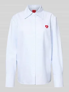 Bluzka koszulowa damska HUGO;Model ‘Erselia’;Efekt: jednolity kolor;Krój: Oversized;Kształt kołnierza: Kołnierzyk koszulowy;Wzór: w paski;Aplikacja: