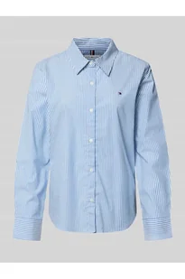 Bluzka koszulowa damska Tommy Hilfiger;Efekt: Wzór na całej powierzchni;Krój: Krój regular fit;Kształt kołnierza: Kołnierzyk koszulowy;Aplikacja: Wyhaftowane logo;Zapięcie: