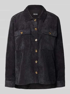 Bluzka koszulowa damska Pieces;Model ‘Effi’;Efekt: Melanż;Krój: Krój loose fit;Kształt kołnierza: Kołnierzyk koszulowy;Zapięcie: jednorzędowa listwa guzikowa;Rękaw:
