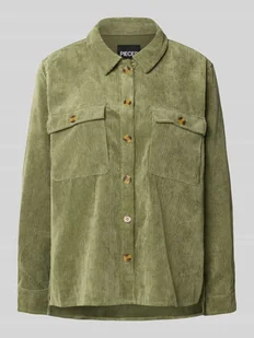 Bluzka koszulowa damska Pieces;Model ‘Effi’;Efekt: Melanż;Krój: Krój loose fit;Kształt kołnierza: Kołnierzyk koszulowy;Zapięcie: jednorzędowa listwa guzikowa;Rękaw: