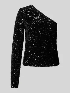 Bluzka na jedno ramię damska Pieces;Model ‘STELLA’;Efekt: jednolity kolor;Fason/krój: prosty;Detale: Cekinowe obszycie;Rękaw: Na jedno ramię;Materiał: