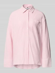 Bluzka z długim rękawem damska Tommy Hilfiger;Efekt: jednolity kolor;Krój: Oversized;Kształt kołnierza: Kołnierzyk koszulowy;Aplikacja: Detal z logo;Zapięcie: