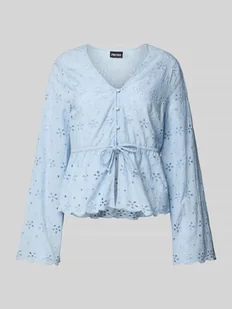 Bluzka z długim rękawem damska Pieces;Model ‘Armorine’;Efekt: jednolity kolor;Krój: Krój regular fit ;Aplikacja: Haft angielski;Detale: Tunel;Dekolt: