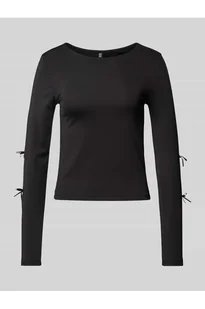 Bluzka z długim rękawem damska Pieces;Model Selina;Efekt: jednolity kolor;Fason/krój: Krój regular fit;Aplikacja: Kokardki na rękawach z rozcięciami pomiędzy nimi;Dekolt: Okrągły dekolt;Rękaw: