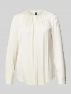 Bluzka damska BOSS;Mieszanka materiałów z dodatkiem streczu;Krój slim fit;Model ‘Banorah’;Okrągły dekolt;Marszczenia ;Mankiety;Długość tyłu w rozmiarze 36: 62 cm;Długość rękawa w rozmiarze 36: 61 cm