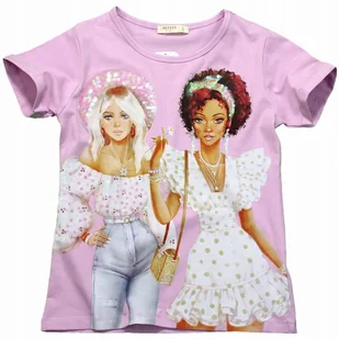 Bluzka, T-shirt dwie dziewczyny w liliowym odcieniu z przodu nadruk - dwie dziewczyny, miejscami ozdobione cekinami krótkie, podwinięte rękawki miła w dotyku...