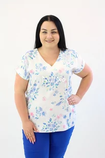 Bluzka w delikatne kwiatuszki Nala Biało-niebiesko-różowa 42