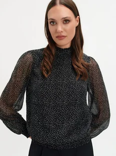 Elegancka bluzka w groszki na stójce to idealny wybór dla każdej modnej kobiety, szukającej wyjątkowego elementu garderoby. Wyjątkowy wzór z drobnymi groszkami nadaje bluzce subtelny, a zarazem stylowy wygląd. Stójka dodaje jej wyrafinowania i elegancji, doskonale komponując się z lekkością materiału. Długie, transparentne rękawy wprowadzają nutę romantyzmu i sprawiają, że bluzka jest idealna zarówno na formalne okazje, jak i na codzienne wyjścia. Można ją z łatwością zestawić zarówno z eleganckimi spodniami, jak i z klasyczną spódnicą, tworząc stylizacje, które przyciągną uwagę.