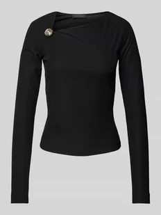 Bluzka z długim rękawem damska GUESS;Mieszanka modalu;Prosty krój;Model ‘FEBE’;Jednolity kolor;Asymetryczny dekolt;Aplikacja z metką;Długość tyłu w rozmiarze S: 54 cm