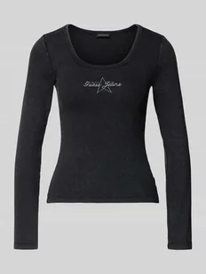 Bluzka z długim rękawem damska Guess Jeans;Mieszanka bawełny i elastanu;Krój slim fit;Okrągły dekolt z prążkowanego ściągacza;Detal z logo;Długość tyłu w rozmiarze S: 58 cm