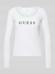 Bluzka z długim rękawem damska Guess;Mieszanka bawełny z dodatkiem modalu;Krój regular fit;Model ‘NEW CARRIE’;Nadruk z logo;Okrągły dekolt