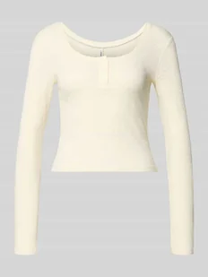 Bluzka z długim rękawem damska Only;Model ‘Juliane Life’;Efekt: jednolity kolor;Krój: Krój slim fit;Dekolt: Dekolt w łódkę z krótką listwą guzikową;Wykończenie: długi rękaw;Wykończenie materiału: drobno prążkowana dzianina