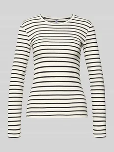 Bluzka z długim rękawem damska Pieces;Efekt: jednolity kolor, dwa kolory;Krój: Krój slim fit;Wzór: w paski;Dekolt: Okrągły dekolt;Rękaw: długi;Wykończenie materiału: Prążkowana dzianina;Materiał: Mieszanka bawełny