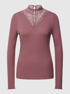 Bluzka o kroju slim fit z długim rękawem i dekoltem w łódkę obszytym koronką model ‘WILMA’