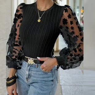 CECHY PRODUKTU: Damska bluzka długim rękawem Ozdobny, siateczkowy materiał Kwiaty 3 wersje kolorystyczne