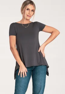 Bluzka z falbanką - Asymetryczna bluzka - M1051 Ciemny Szary rozmiar L