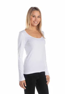 Bluzka damska z klasycznym głębokim dekoltem: długi rękaw, koszulka bez wzoru, ponadczasowy fason, dopasowany do sylwetki, delikatna miła dzianina ...