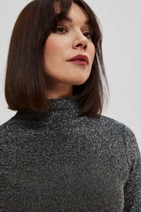 78% POLIESTER 17% METALICZNA NITKA 5% ELASTAN. Wyjątkowa bluza w kolorze czarnym. Całość gęsto przeszyta błyszczącą nitką w kolorze srebrnym. Bardzo ozdobna ...