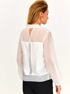 Bluzka delikatna i elegancka. Klasycznej elegancji z pewnością daje połączenie tkaniny wiskozowej, nieprzezroczystej oraz dyskretne wstawki z szyfonu wiskozowego. Podobnie jak mała stójka fantazyjnie przek ...