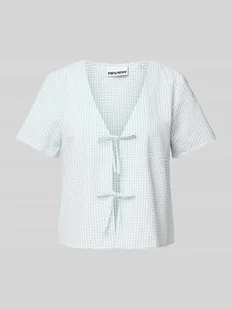 Bluzka damska REVIEW;Mieszanka bawełny;Prosty krój;Dekolt w serek;Wiązanie;Rękaw o dł. 1/2;Długość tyłu w rozmiarze S: 48 cm;Długość rękawa w rozmiarze S: 27 cm