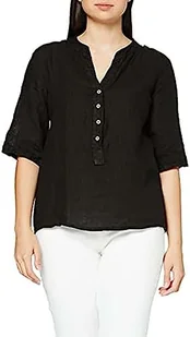 Bonateks, Bluzka z kołnierzem tunezyjskim z koronkową wstawką i długimi nakładanymi rękawami, 100% len, rozmiar DE:38, rozmiar US: L, topy, czarna - wyprodukowano we Włoszech, czarny, 38