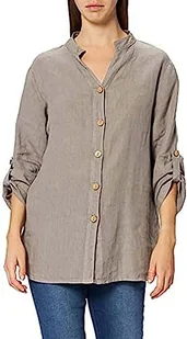 Bonateks, Bluzka zapinana na guziki z kołnierzem tunezyjskim i długimi rękawami, rozmiar DE:42, rozmiar US:XL, pustynia - wyprodukowano we Włoszech, beżowy, 42