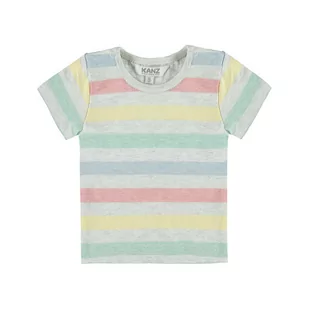 Chłopięca bluzka z krókim rękawem, która idealnie sprawdzi się w ciepłe, letnie dni. Koszulka jest w różnokolorowe paski, więc będzie fajnie pasować do niema...